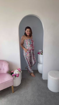 The gorgeous Cinta Jumpsuit is a strapless piece, in a gorgeous digital floral print. Easy to wear for Summer, made in Viscose/Rayon. This Jumpsuit has side pockets.