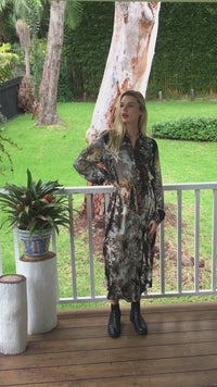 This stunning Jungle Buttoned Dress is made from a viscose twill, which is a thicker fabric. Perfect for the Cooler months. And the print is amazing! Lovely Jungle Type print.