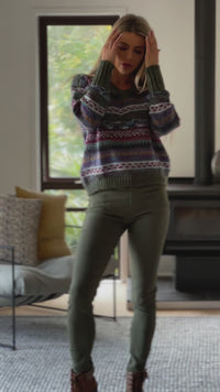 The Lugano Sweater is a lovely handmade knit made with a mohair blend wool. The colours are a stunning blend of blues, mauves and green woven in an intricate striped pattern.