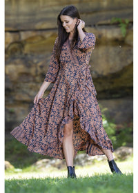 Bodhi Long Sleeve Wrap Dress stunning Earthy Print.