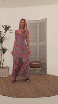 Gorgeous Maxi Dress with shirring in the bodice. This dress can be reversed so V Neckline is at back and front will be straight across.
