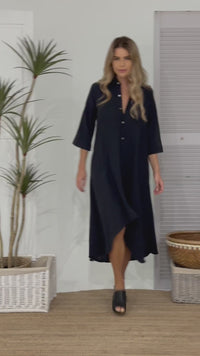 Elea Long Shirt Dress - Black