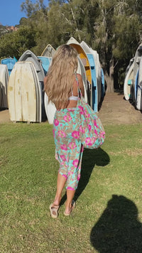 A lovely slouch beach bag. Lined inside, with a matching sarong. Sarongs are fabulous, very light weight and dry very quickly.