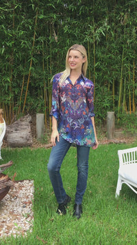 Moonflower Shirt, Stunning Digital Print with White Cranes.