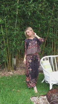 Amber Top is made from Viscose Twill. Buttons down the front, (decorative) and sleeve has ties that can be pulled to adjust the length.