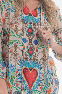 Mexicana Blouse in a digital print, made with silk/viscose, Made in India.