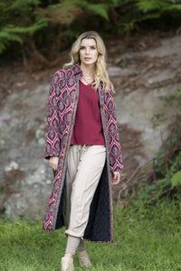 The stunning Noel Print in a beautiful quilted Coat!  This is a beautiful coat, stunning tones of wine, green and Gold Leaf.