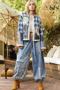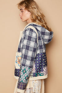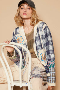 long sleeve regular fit hoodie jacket top in quilting with thermal sweater patch, embroidery point, normal washing, plaid pattern.