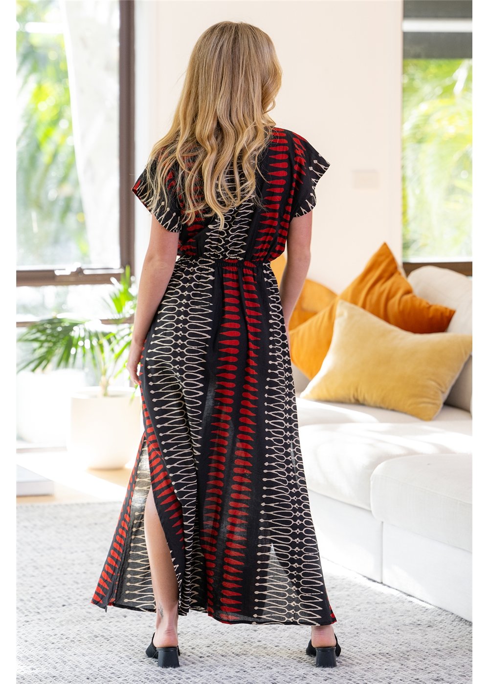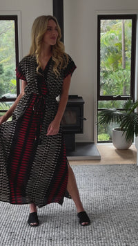 Yindi Cotton S/Sleeve Dress in a straight maxi style.