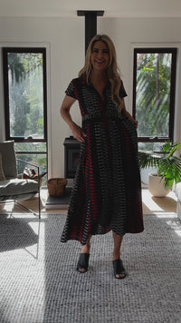 This dress is made from 100% cotton. Button down front with side pockets. Collar.