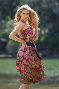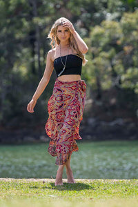 Wear as a dress! Simply place skirt behind you and cross over the ties in the front and tie behind neck! Wear with a gorgeous belt, shown here with our Moroccan Leather Belt.