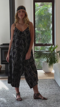 Cool, Cotton! The Jedda Jumpsuit is a perfect Summer addition to your casual wardrobe. Loose fitting with adjustable shoulder straps. T-Shirt or top may be worn under.