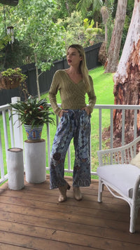 Louis Pants are made from Viscose Twill. This print is fabulous! It's worn here with the Lydia Cardi in Camel.