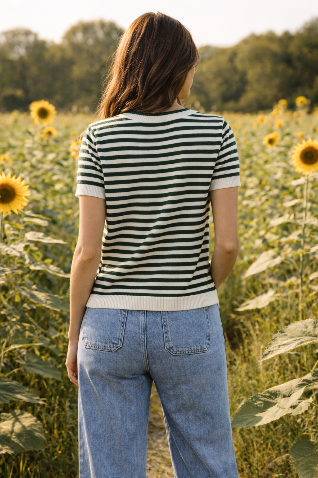 Crafted from a soft, breathable knit, it offers a comfortable stretch fit that drapes beautifully on the body. The slightly relaxed silhouette makes it ideal for tucking into denim or wearing loose for a casual coastal feel.