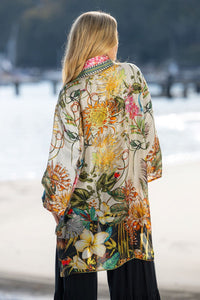 Destiny Kimono gorgeous silk viscose Kimono. Decorative tassles on the edges. Stunning Floral Digital Print.