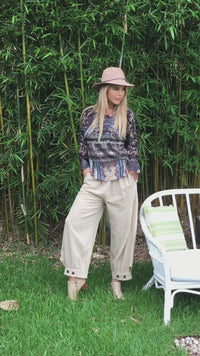Billie Long Sleeve Top has a round neck and is made from Viscose Twill. Stunning Digital Print of Navy Florals with Chocolates colour combinations.