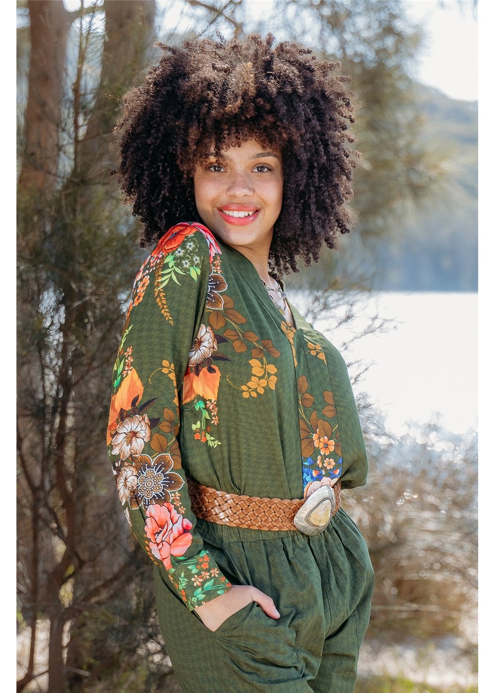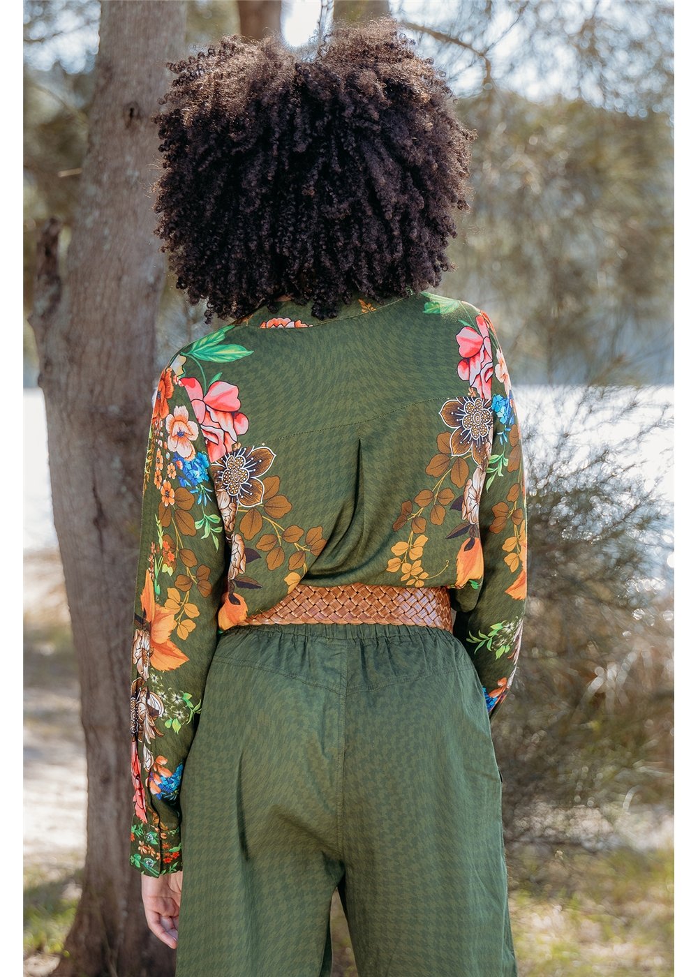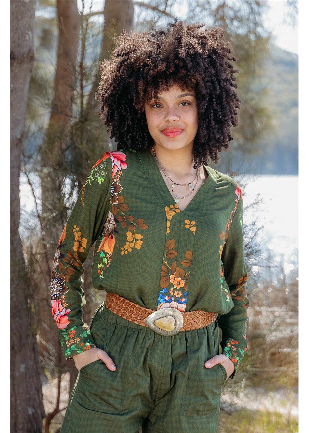 Palmira Sas Top made in a Viscose Twill. V Neck, long sleeve,